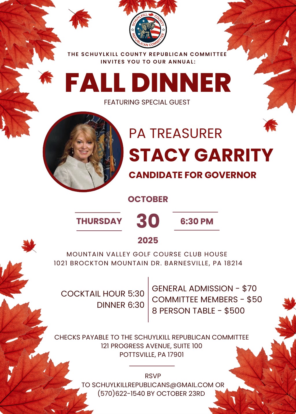 Schuylkill Republican Fall Dinner Invite 25